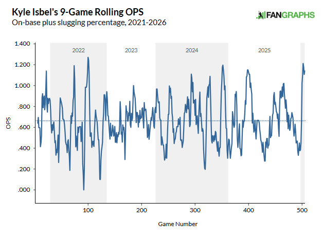 Kyle Isbel (4): Isbel is primarily being used as a platoon bat facing righties. As good as this stretch is, it is on par with other hot streaks during his career. Expect some disappointing production in the near future.
