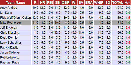 So that covers what went right. Despite losing my most expensive player for the majority of the season, I managed to recover his lost offense with in-season pickups. Sadly, I wasn’t able to make similarly impactful pitching pickups to offset those disasters!