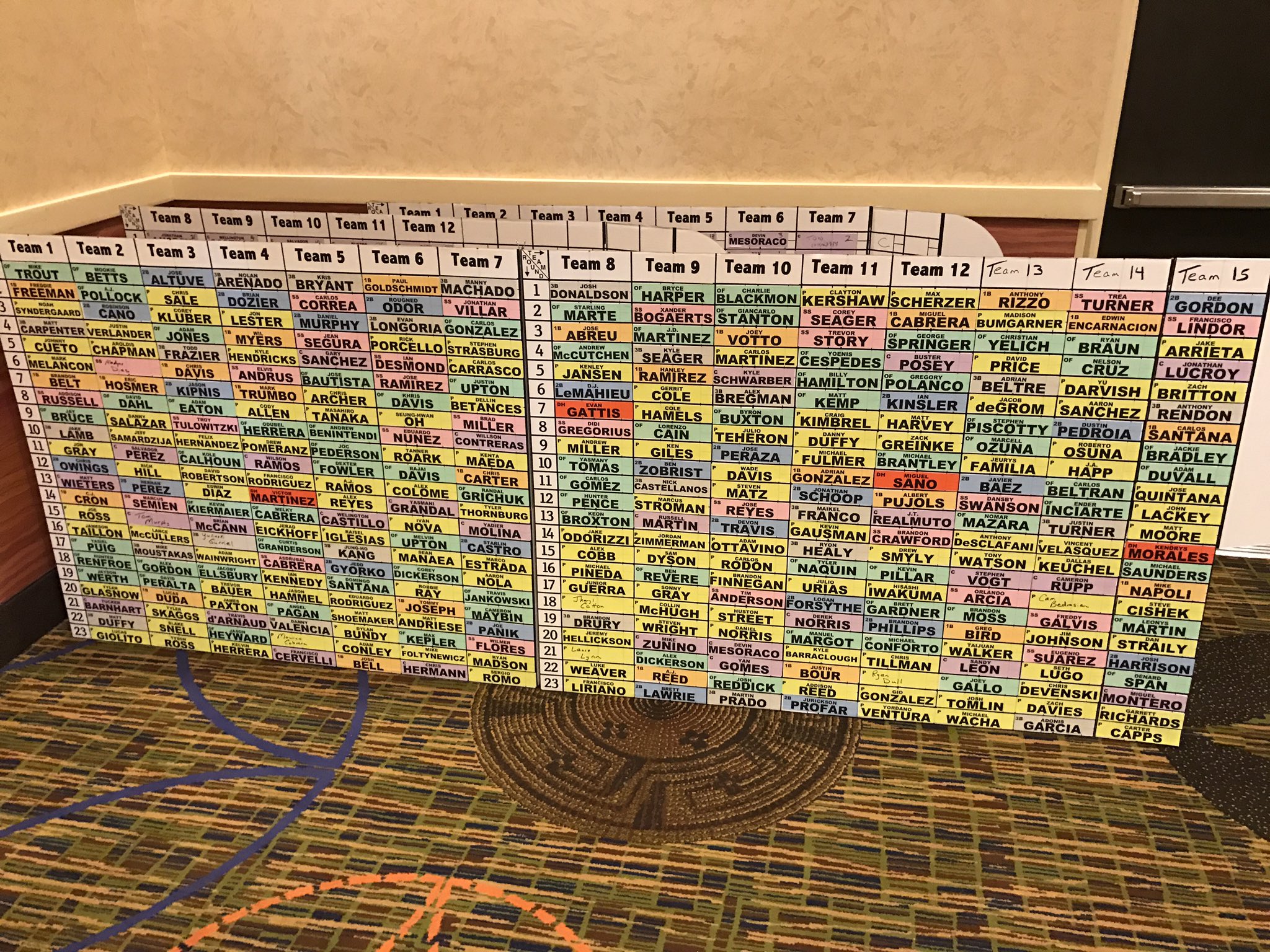 The specs: 15 teams, two catchers, three bench; otherwise standard format. Snake draft. Team Alex Chamberlain landed the No. 10 slot.