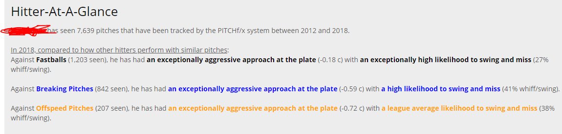 That description, courtesy of Brooks Baseball, is terrifying. Yet it’s possible Baez keeps his strikeouts in check because of his aggression; if he were any more passive, the called strikes he would inevitably incur would reduce his margin for error when he does swing. To attest: he out-performed his expected strikeout rate by 3 percentage points in 2017.